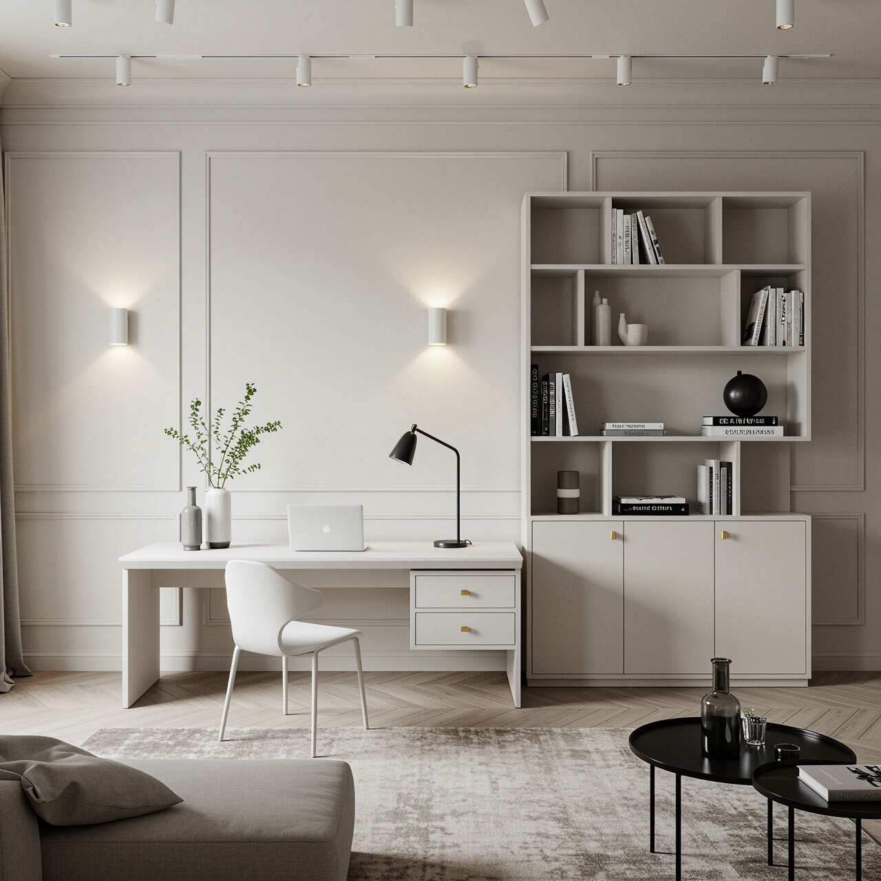 - Layered Lighting: Mini downlights form the base ambient layer, while spotlights serve as top-layer accents, creating depth and dimension.